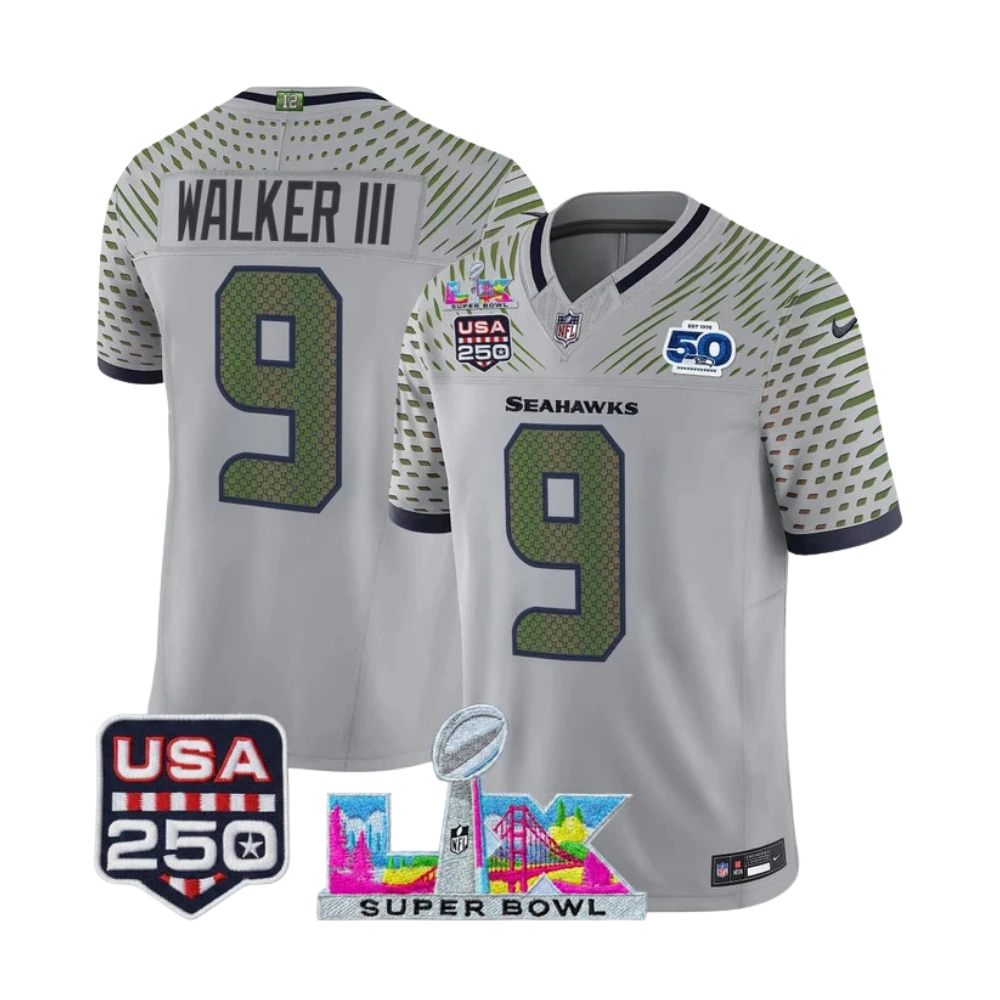 Men’s 2026 Seattle Seahawks Super Bowl LX &USA 250 5Oth RC Gray Jersey